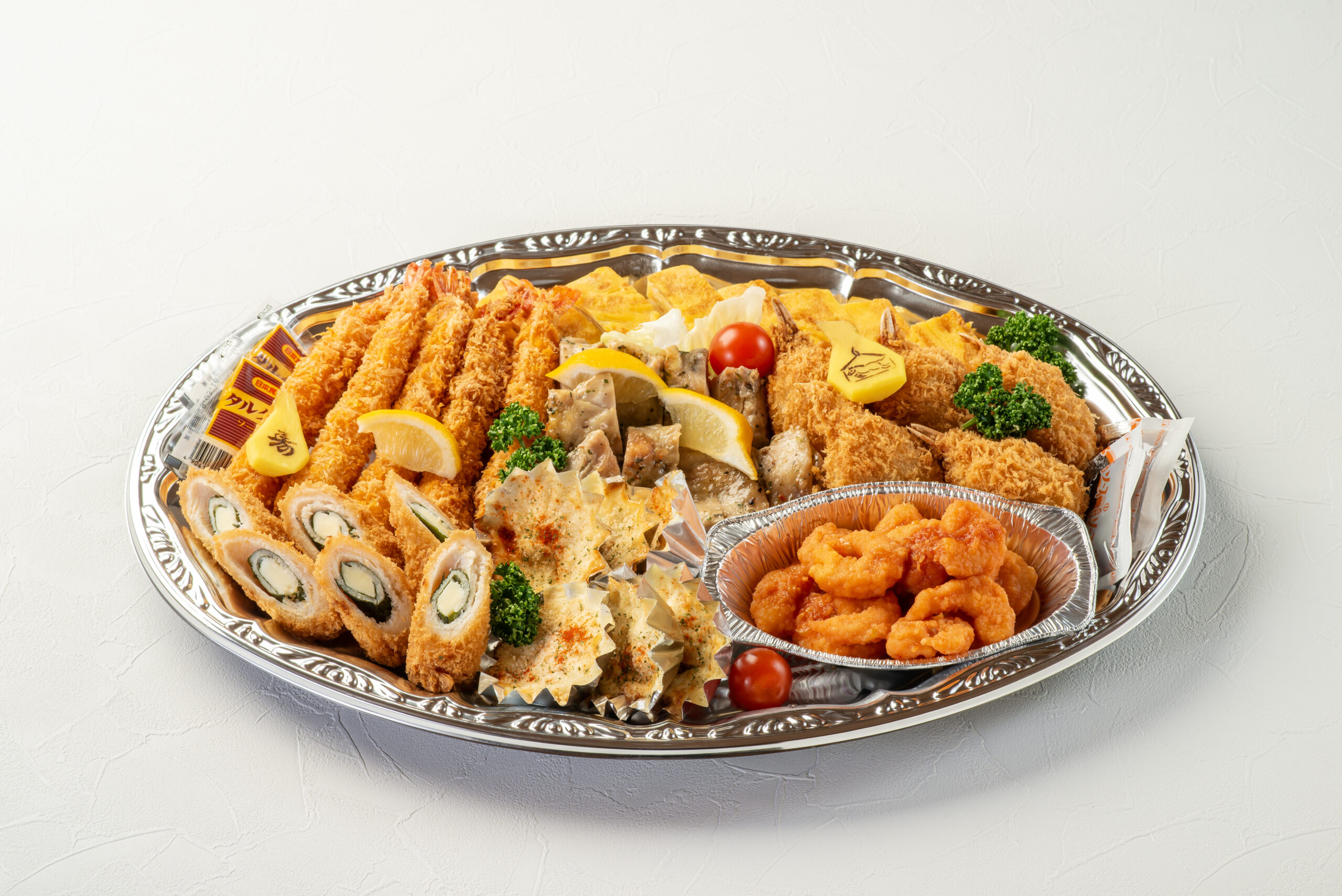 オードブル 7000円 2025.10.20 オードブル 7000円 (NM011) 定価(税込)¥7,000販売価格(税込)¥7,000在庫状態 : 在庫有り数量皿 商品説明 「笑顔が集まる、銀皿のごちそう——華やぎのオードブル」 海老フライ、チキンロール、グラタン、クリームコロッケ—— 多彩な味わいを一皿に詰め込んだ、銀皿のオードブル盛り合わせ。 サクサク、ふんわり、とろり——食感も香りも豊かに、 大人も子どもも楽しめる、心ほどける美味しさです。 レモンの爽やかさ、トマトの彩り、パセリの緑が、 食卓に華やぎを添え、会話を弾ませてくれます。 家族の集まりに、記念日の乾杯に。 「みんなで美味しい時間」を演出する、笑顔のひと皿をどうぞ。 ご注文について お早目のご注文をお願いいたします。 引渡しにつきましては、30日午後より31日、2日、3日をご指定ください。 店頭引き渡し カートの中の配達方法で「店頭引取り」を選択ください。配達料金は加算されません。 お支払いについて ※個人のお客様及び初めてのご注文の場合は、「口座振込(前払い)」もしくは、お引き取り時に「現金」でお願いいたします。 ※企業のお客様は、「請求書払い(後払い)」もご利用できます。 投稿者: akatou コメント: 0 ちらし寿司 7500円 前の記事 回転皿 23000円 次の記事