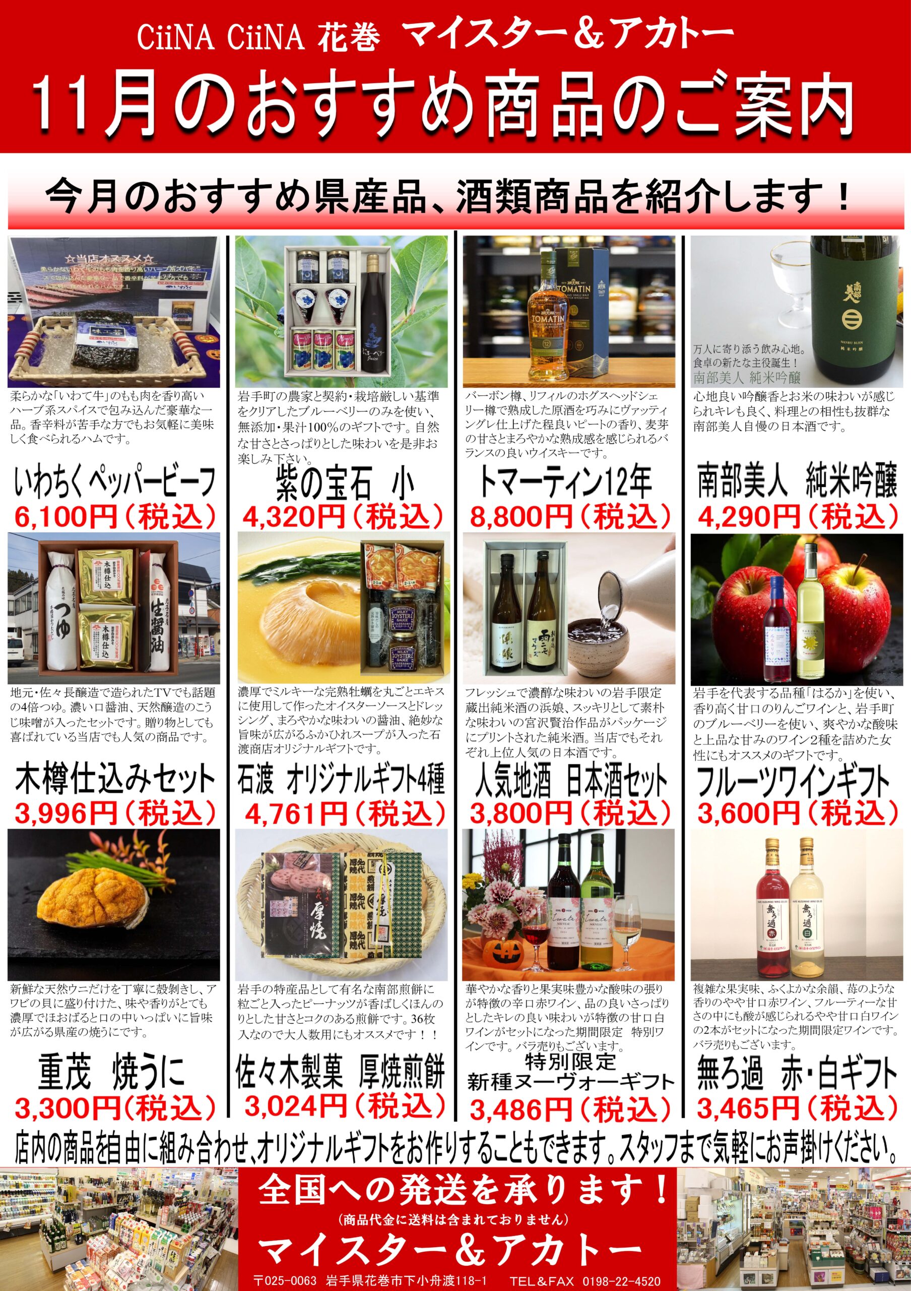 マイスター&アカトーより11月のおすすめ商品 2025.11.14 マイスター&アカトーより11月のおすすめ商品のご案内です。 投稿者: akatou 赤沼商店花巻空港店より11月のおすすめの商品のご紹介 前の記事 マイスター&アカトーよりお歳暮ギフトおすすめ商品 次の記事
